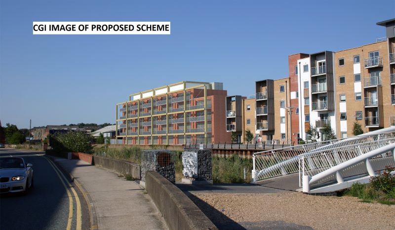 “37 apartments, 2 office units and associated layout, access and parking with all other matters reserved”.