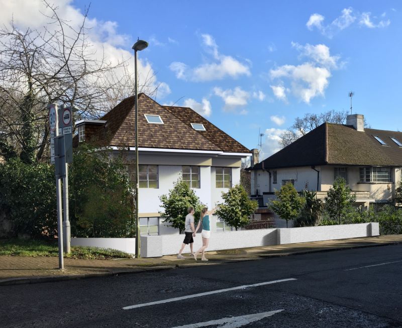 'Demolition of the existing dwelling and the erection of a two-storey buliding with rooms in roof space and basement level to provide 6 no self-contained flats. Provision for parking'.