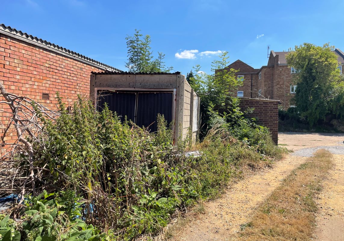 The property comprises a single storey garage and land with further potential.