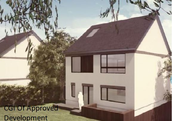 'Erection of 2 no. three bed dwellings following demolition of existing derelict house and garage. Resubmission.'