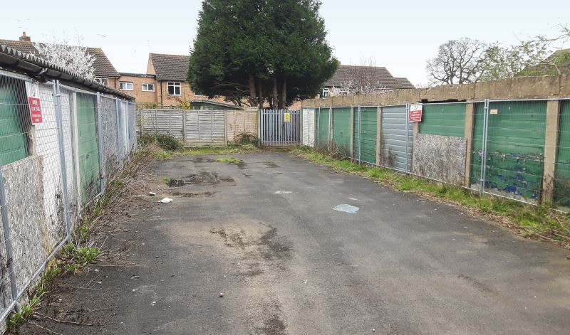 'Outline application (with only landscaping reserved) to demolish existing garages and erect a group of 3 terraced dwellings with access'.