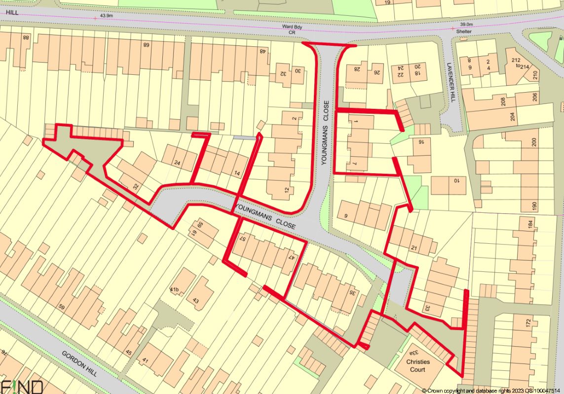 The land and roadways are situated on a residential road close to local shops and amenities. The open spaces of Hilly Fields Park are within easy reach. Transport links are provided by Gordon Hill rail station.