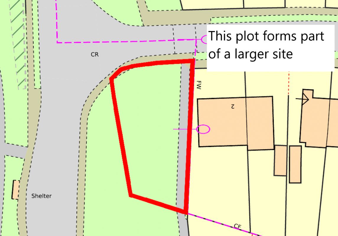 The site area depicted within the plan in the auction particulars is for indicative purposes only. Additionally, any measurements stated may not be exact. Some or all of the plot may comprise adopted highway land and if the site has trees, there may be Tree Preservation Orders in place. Buyers should rely on their own enquiries with regard to precise measurements, any consents or rights over the land and any possible development potential or alternative uses for this site.