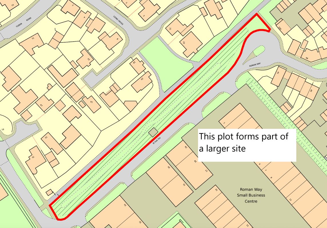 The site area depicted within the plan in the auction particulars is for indicative purposes only. Additionally, any measurements stated may not be exact. Some or all of the plot may comprise adopted highway land and if the site has trees, there may be Tree Preservation Orders in place. Buyers should rely on their own enquiries with regard to precise measurements, any consents or rights over the land and any possible development potential or alternative uses for this site.