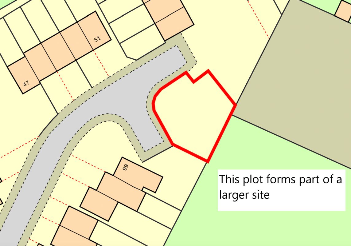 The site area depicted within the plan in the auction particulars is for indicative purposes only. Additionally, any measurements stated may not be exact. Some or all of the plot may comprise adopted highway land and if the site has trees, there may be Tree Preservation Orders in place. Buyers should rely on their own enquiries with regard to precise measurements, any consents or rights over the land and any possible development potential or alternative uses for this site.