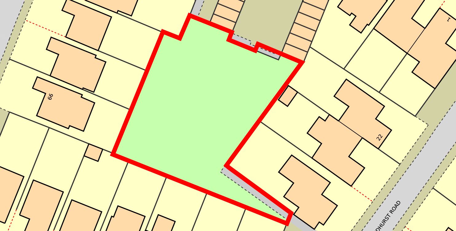 The site area depicted within the plan in the auction particulars is for indicative purposes only. Additionally, any measurements stated may not be exact. Some or all of the plot may comprise adopted highway land and if the site has trees, there may be Tree Preservation Orders in place. Buyers should rely on their own enquiries with regard to precise measurements, any consents or rights over the land and any possible development potential or alternative uses for this site.