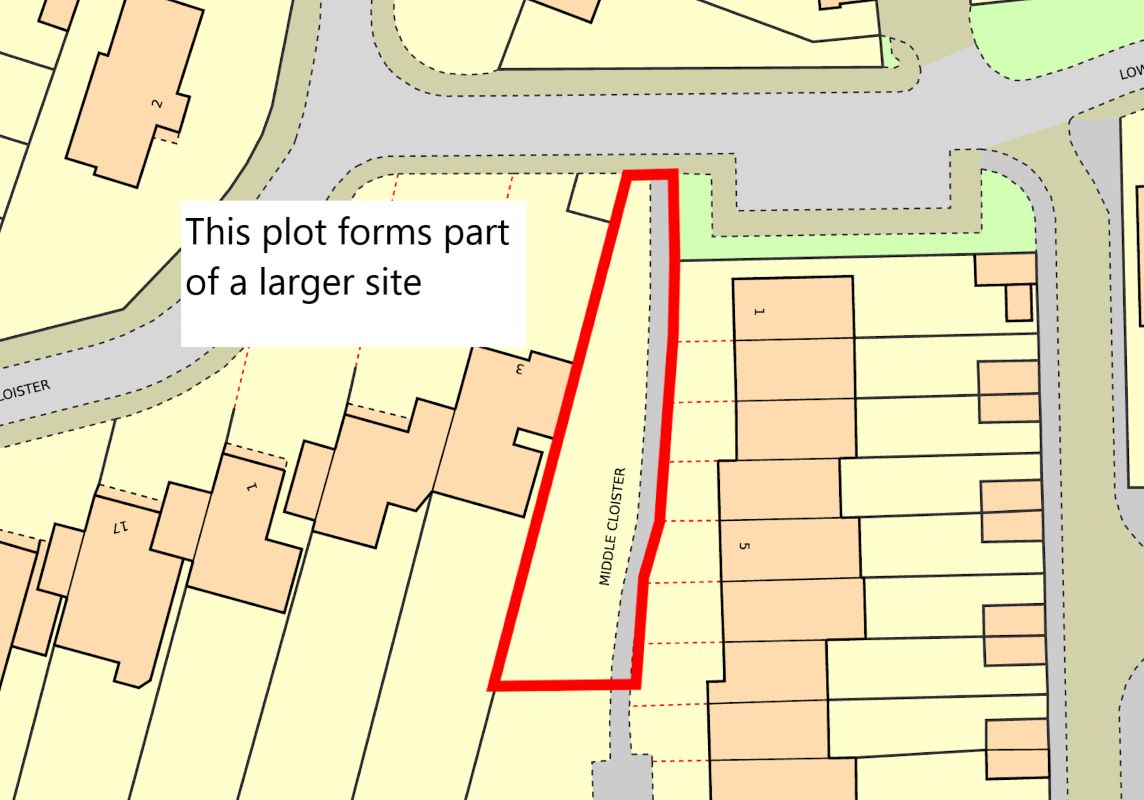 The site area depicted within the plan in the auction particulars is for indicative purposes only. Additionally, any measurements stated may not be exact. Some or all of the plot may comprise adopted highway land and if the site has trees, there may be Tree Preservation Orders in place. Buyers should rely on their own enquiries with regard to precise measurements, any consents or rights over the land and any possible development potential or alternative uses for this site.