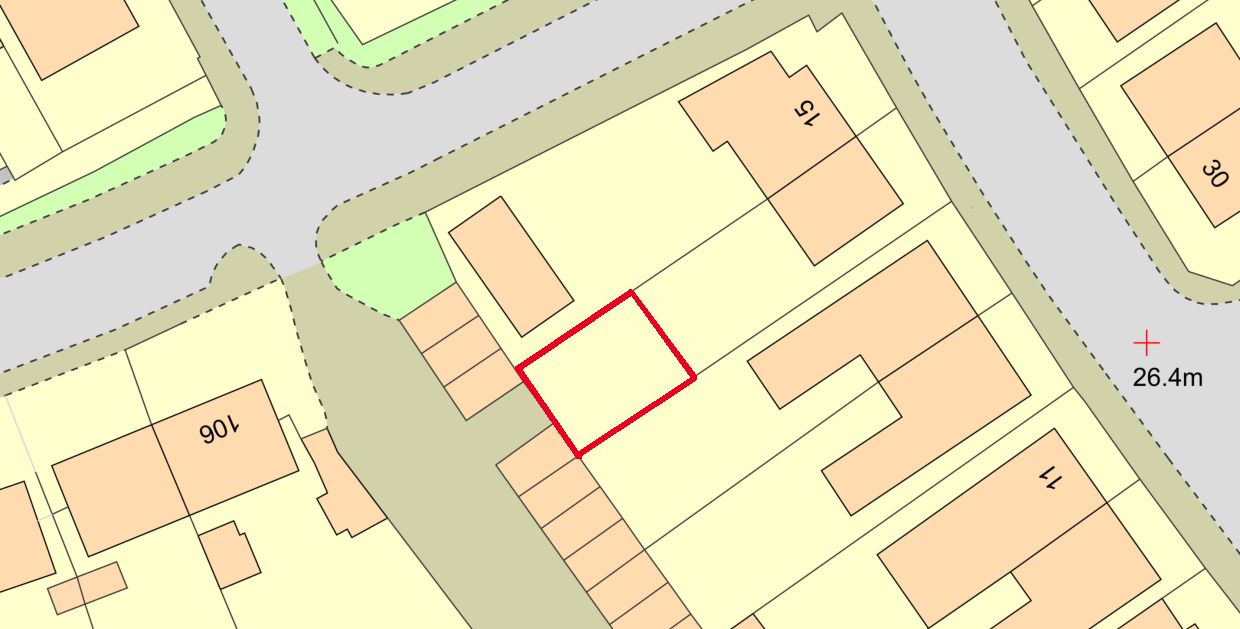 The site area depicted within the plan in the auction particulars is for indicative purposes only. Additionally, any measurements stated may not be exact. Some or all of the plot may comprise adopted highway land and if the site has trees, there may be Tree Preservation Orders in place. Buyers should rely on their own enquiries with regard to precise measurements, any consents or rights over the land and any possible development potential or alternative uses for this site.