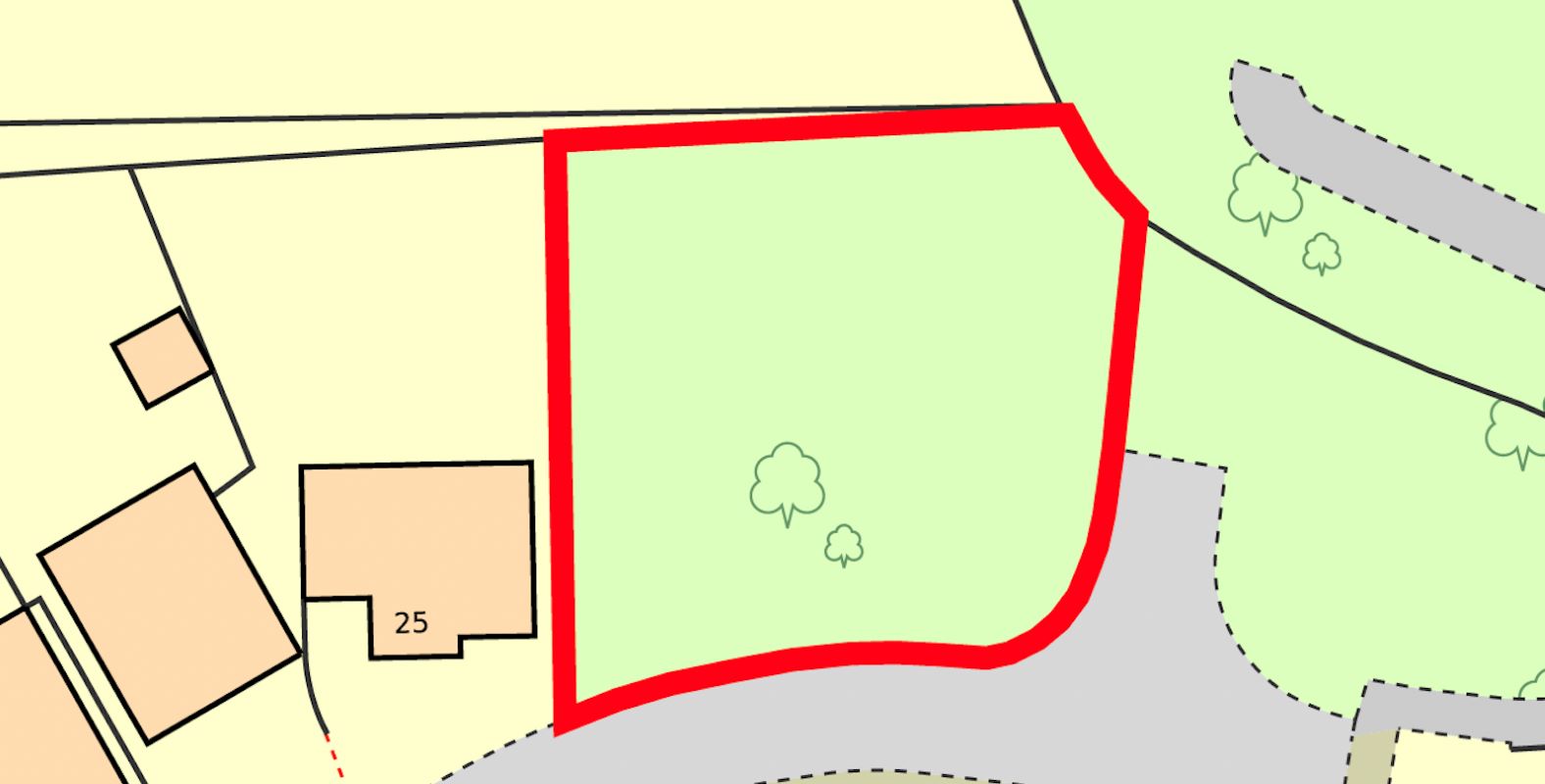 The site area depicted within the plan in the auction particulars is for indicative purposes only. Additionally, any measurements stated may not be exact. Some or all of the plot may comprise adopted highway land and if the site has trees, there may be Tree Preservation Orders in place. Buyers should rely on their own enquiries with regard to precise measurements, any consents or rights over the land and any possible development potential or alternative uses for this site.