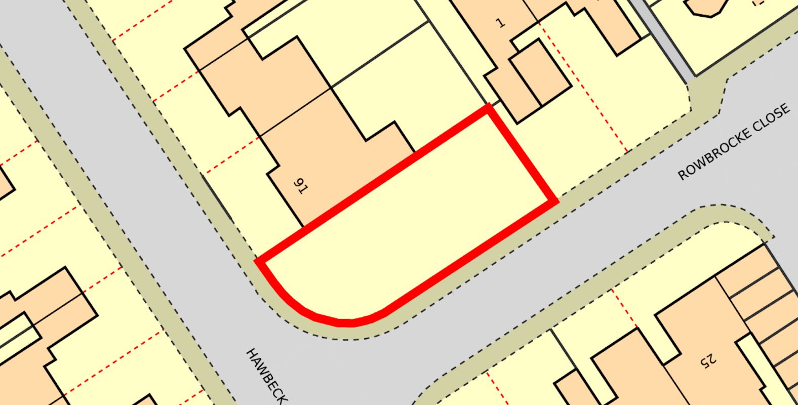 The site area depicted within the plan in the auction particulars is for indicative purposes only. Additionally, any measurements stated may not be exact. Some or all of the plot may comprise adopted highway land and if the site has trees, there may be Tree Preservation Orders in place. Buyers should rely on their own enquiries with regard to precise measurements, any consents or rights over the land and any possible development potential or alternative uses for this site.