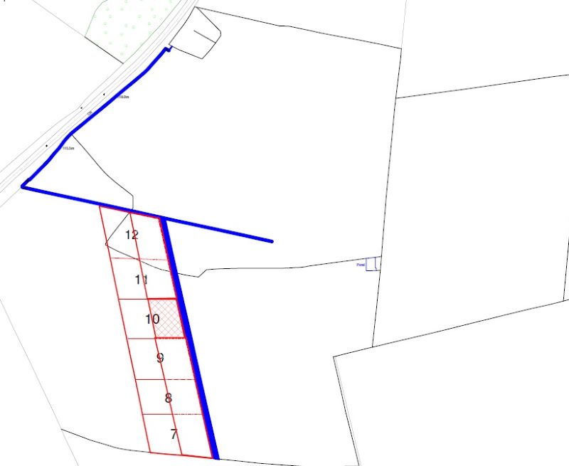 These rectangular plots are set within part of a larger site. They are accessed via a right of way (shaded blue on the plan)