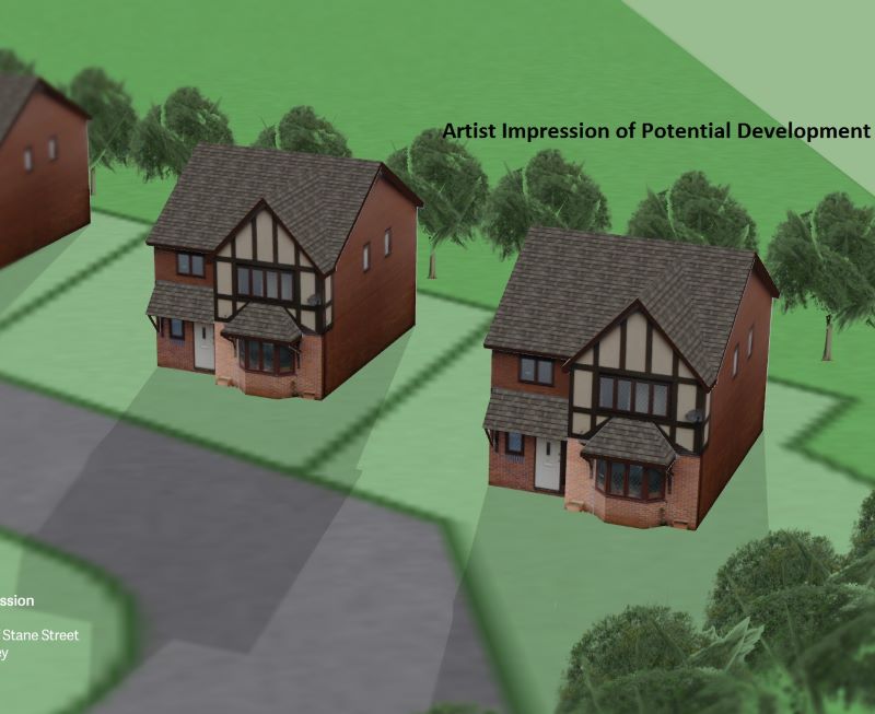 Purchasers are deemed to rely on their own enquiries with regard to any possible development potential for this individual plot but these details show an artist’s impression of how a development on this site could look if planning permission is granted.